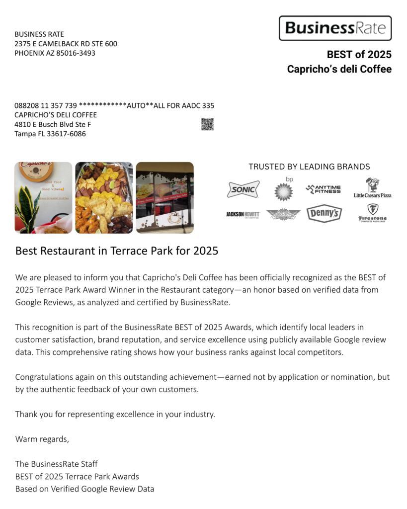 Your feedback means the world to us! If you enjoyed your meal or coffee at Caprichos Deli Coffee, we’d love for you to share your experience. Your review helps us grow and lets others discover the delicious flavors we serve every day.